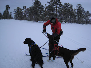 Tok med hundene på en skogstur på dagtid, for å slite dem ut til kvelden:-) Det var mye snø, så det var flere som ble sliten.... Er glad jeg tok denne turen, for i ettertid har det bare vært mildvær, og det blir mindre og mindre snø....